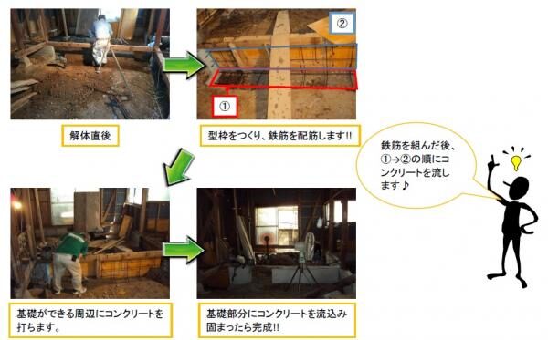 既存はブロック基礎で今の耐震基準をクリアできないため、基礎工事から行いました!!