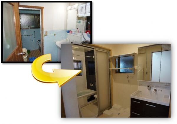 洗面脱衣場と浴室の間取りは変わっていませんが、洗面化粧台と浴室を入替ました!