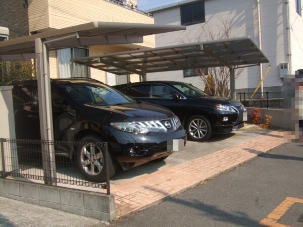 立派なカーポートが完成しました!大きなSUV車2台が楽々納まり、あと丸々一台分のスペースもあります(^^)/ リクシルのアーキフィールドです