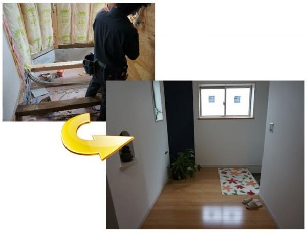内部の増築のBEFORE&AFTERパート2!隅のクロスのアクセントカラーがセンスを感じます(^^)