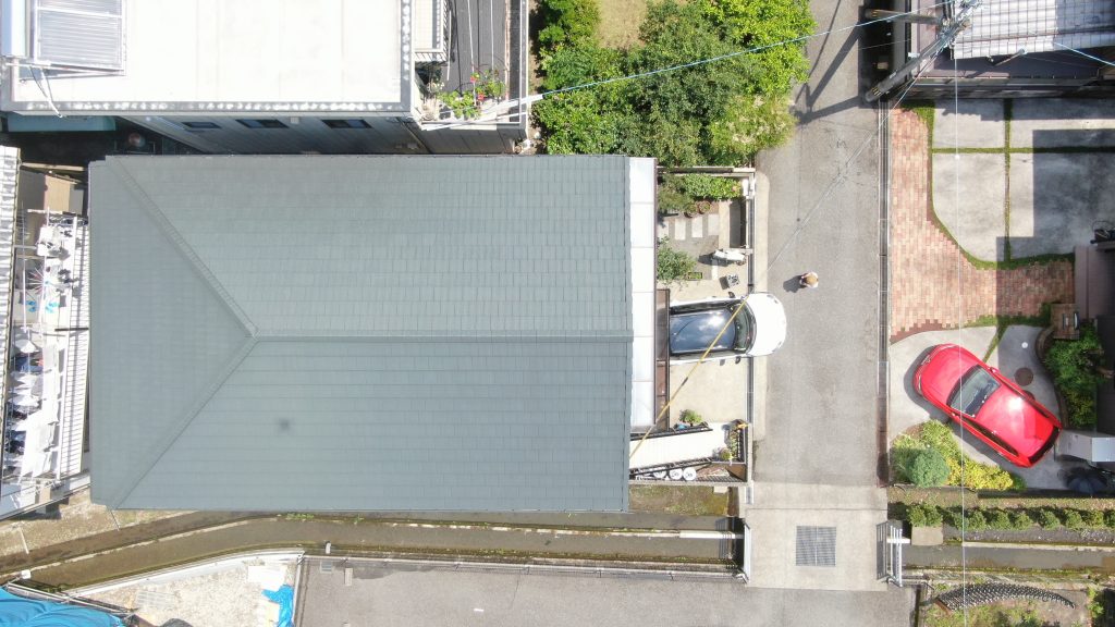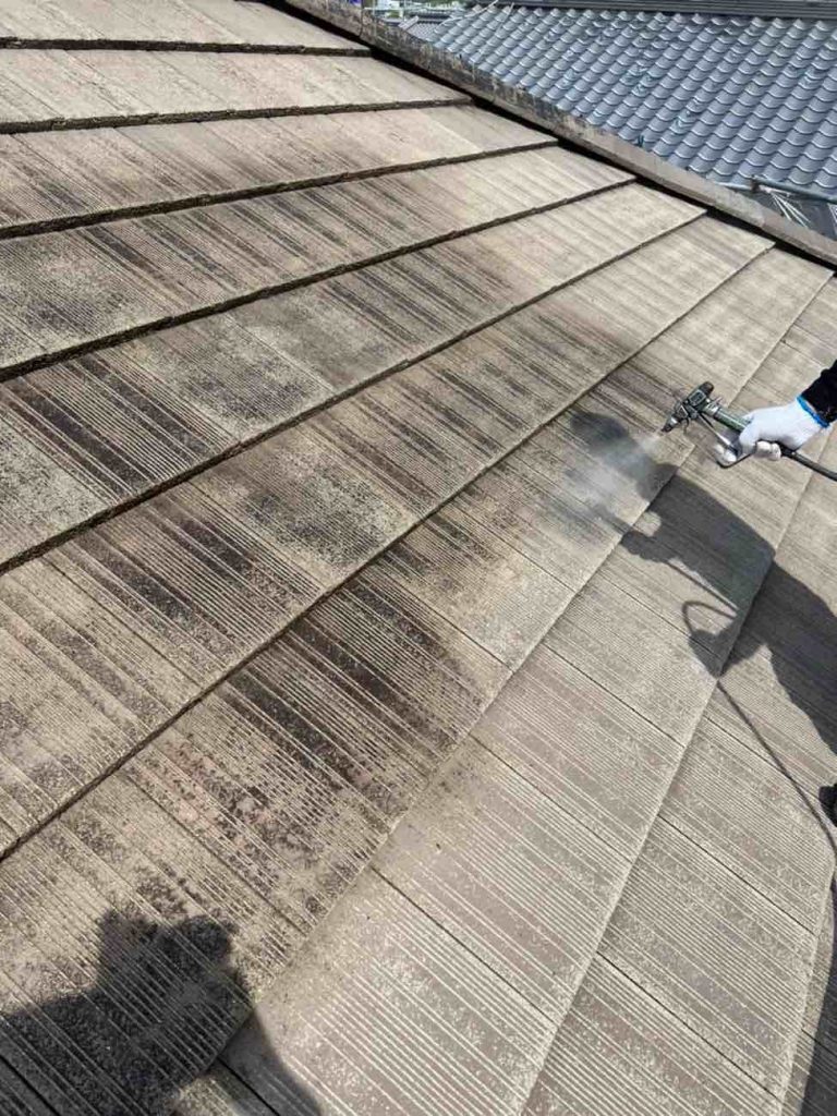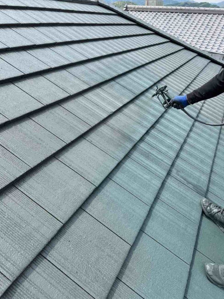 屋根塗装 屋根も外壁と同じように三回塗りを行います。