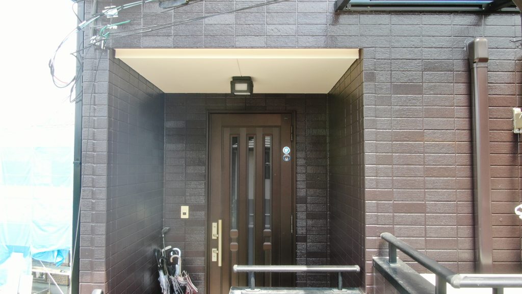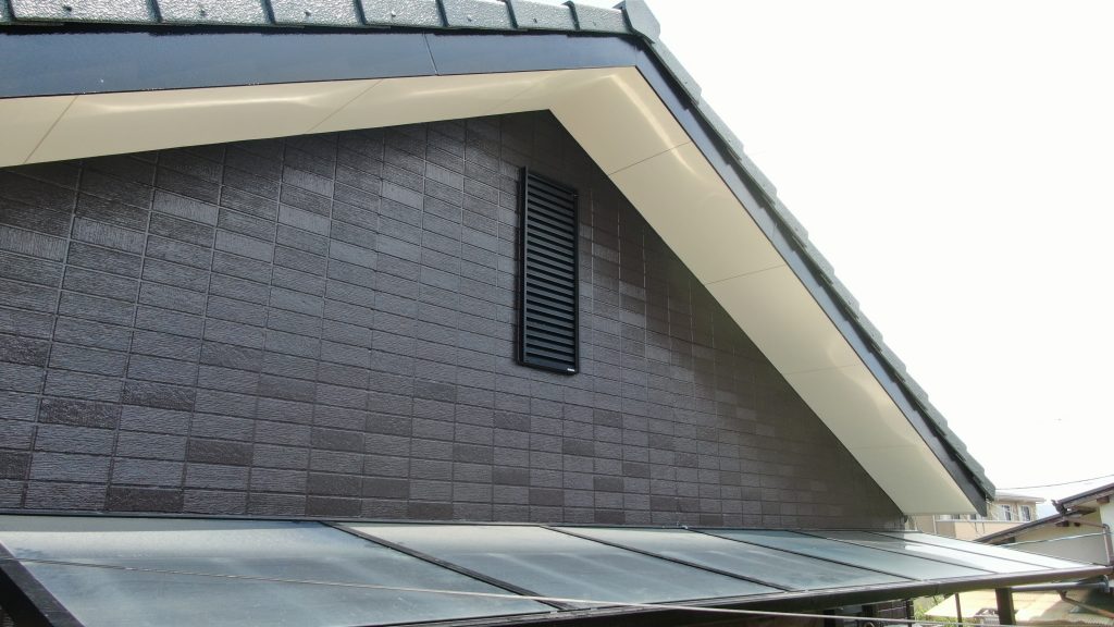 付帯塗装 樋や、シャッターボックス、軒天なども塗装しました。 軒天はクリーム色に。 付帯塗装は黒色で塗装しました。 軒天は天井部分にあたるので、基本的につや消し塗料で 塗装します。