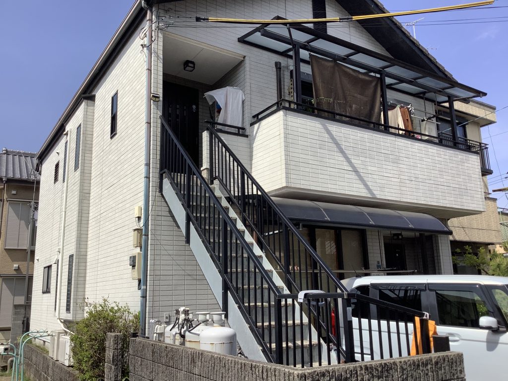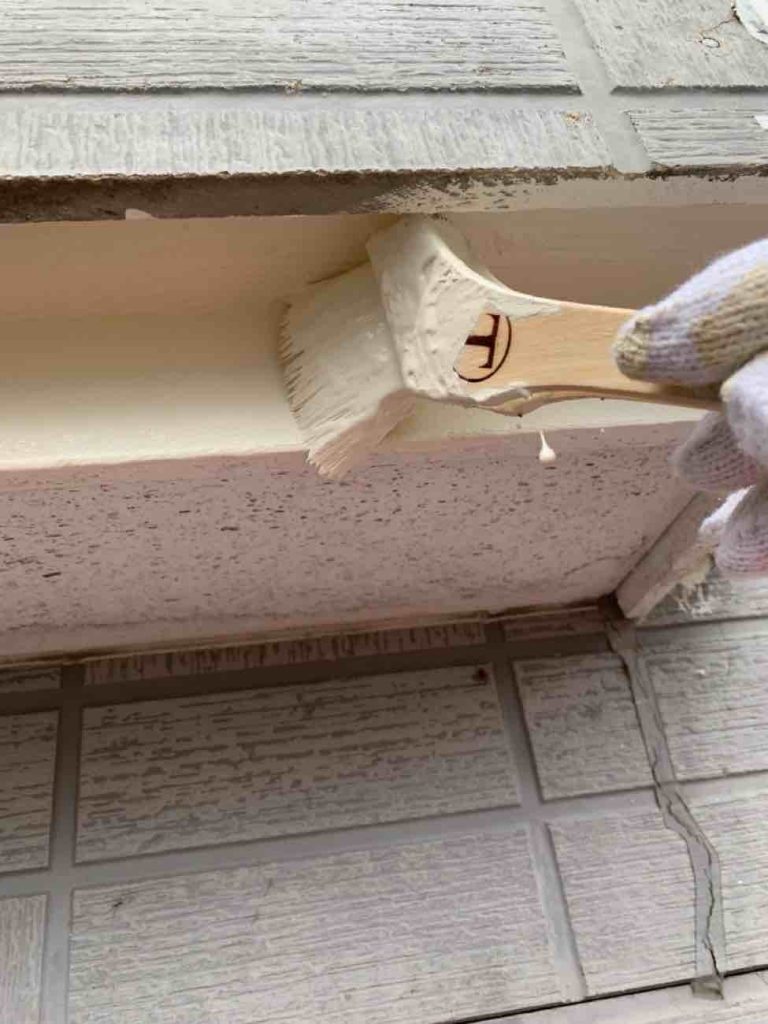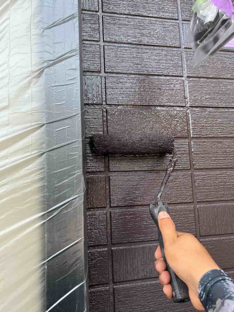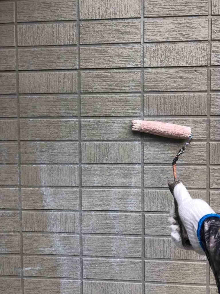 下塗り シーラーで下塗りを行いました。 上塗り材との密着をより良くします。 外壁に塗料が吸い込まれるのを防ぐ役割をします。