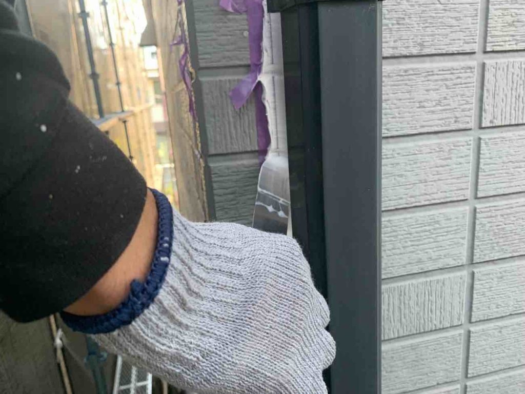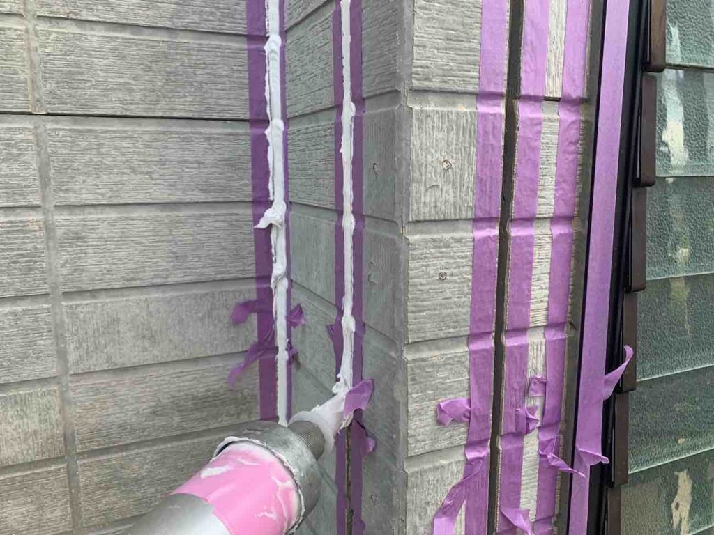 既存のコーキングを撤去し、 養生を行いました。