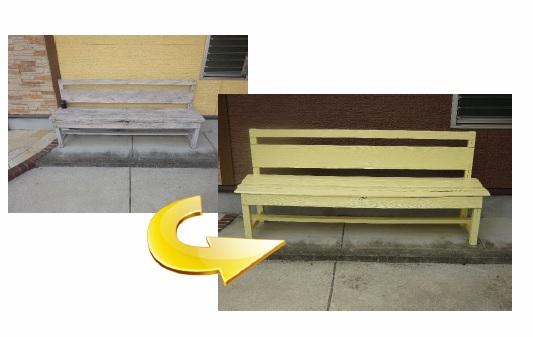 玄関横にあったベンチも2階部分の色で塗装しました。「丁寧で綺麗に塗ってもらってありがとう。」と喜んで頂きました。