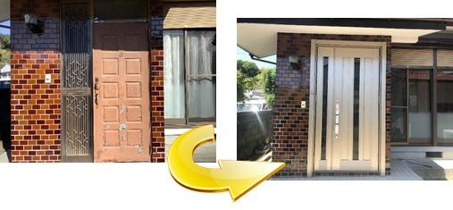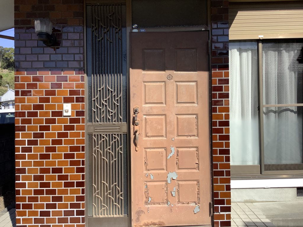 玄関ドアです!以前の玄関ドアはかなり劣化した状態でしたが、新しい玄関ドアをつけ、生まれ変わりました。玄関ドアはカバー工法でつけています!