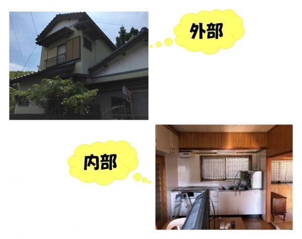 外部は、色褪せもしていて塗替え時期でした。内部は、壁付けキッチンで、ダイニング部分は少し使いづらい感じでした!!