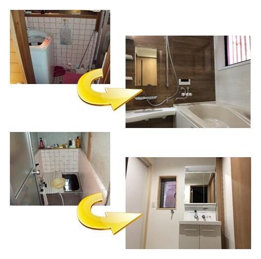 水廻りのBefore&Afterです!!写真を見てもらっても分かるように、リフォーム前はすごく作業スペースが狭く使い辛かったものが、リフォーム後は間取りを変えることで広くなり、生活しやすくなりました。