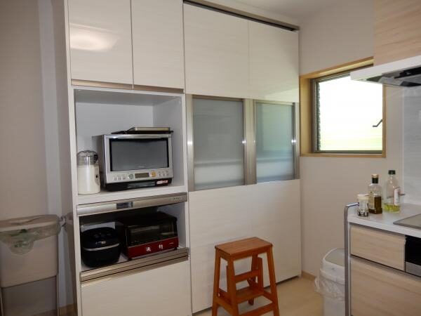 また、キッチンの背面にも収納棚を設置したので、収納場所が増えてすっきりしました。西日がまぶしいとのことでしたので、窓を以前の1/2ほどの大きさにしました。