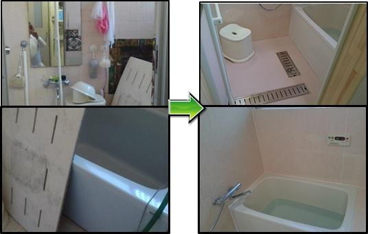 浴室のビフォーアフターです。タイルだった壁を全てパネルに張替えました!浴槽や床も新しくし、以前より暖かいお風呂に変身しましたo(^▽^)o