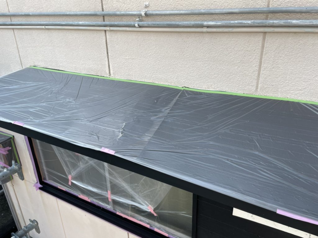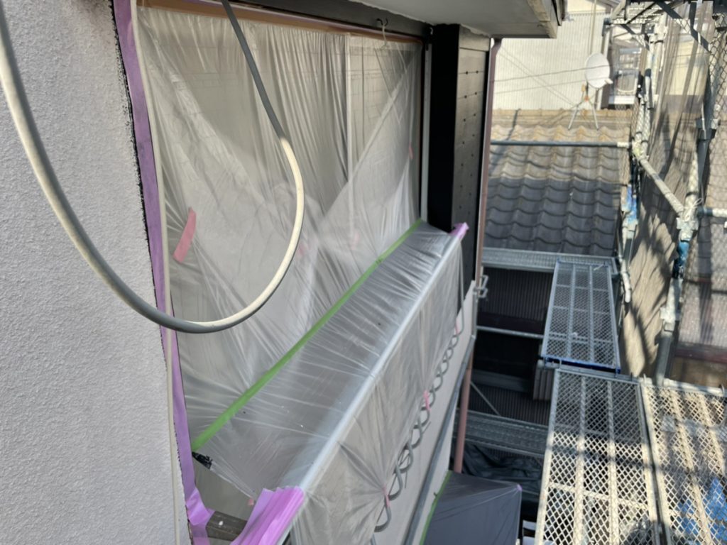塗料や汚れが塗装部以外に付着しないように養生を行いました。
