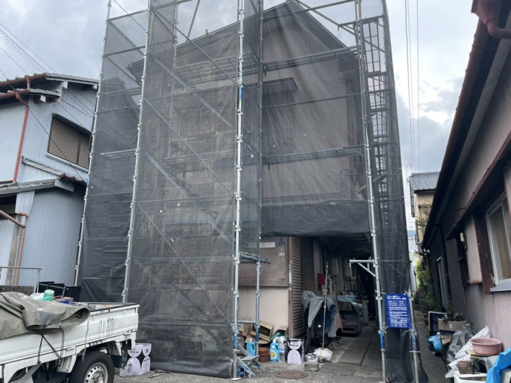 塗装前に足場の組立を行いました。