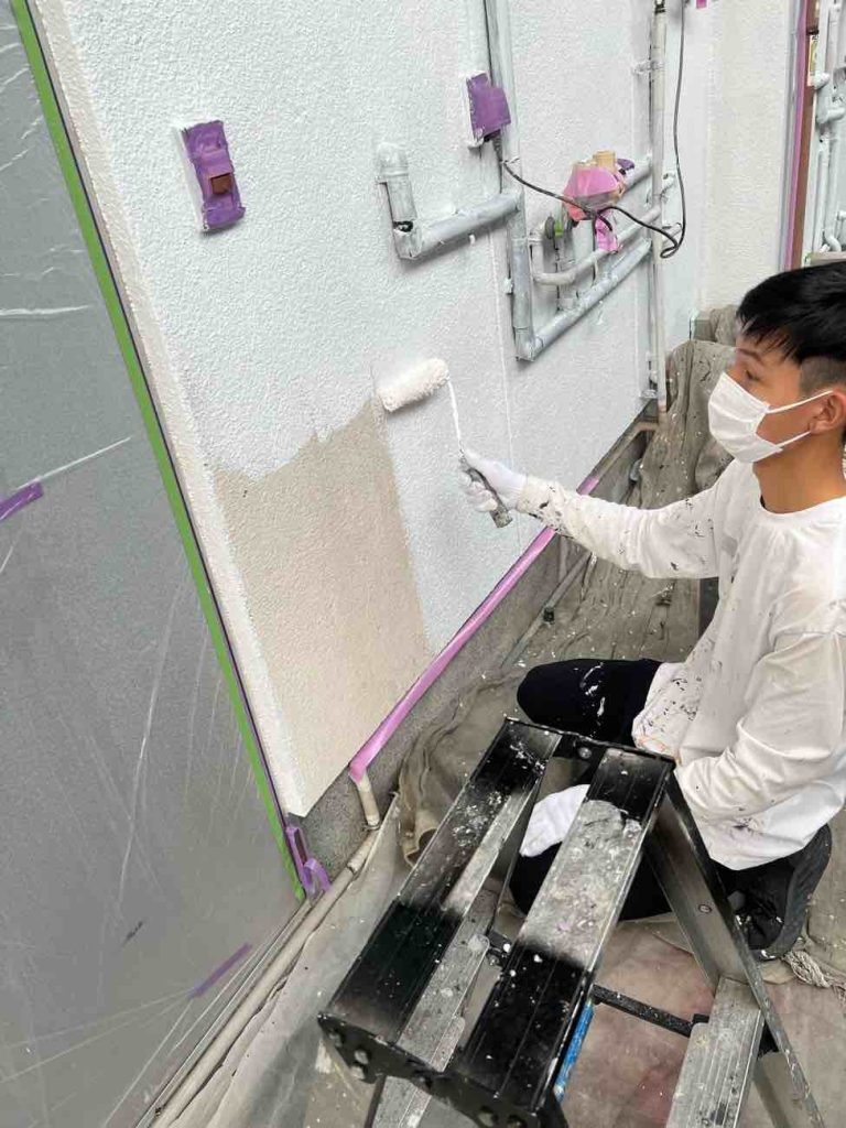 ◎上塗り 中塗りで生じた色ムラの補修や雨風、紫外線から外壁を守ります。