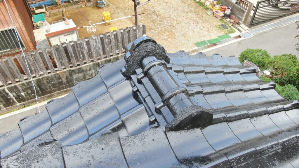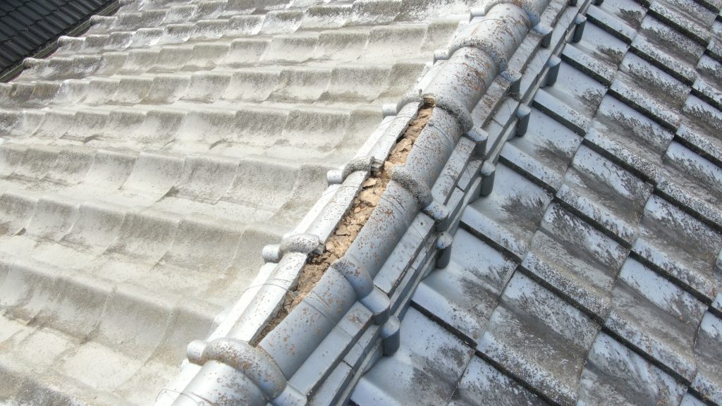 大屋根の棟は割れ、中の漆喰が見えてる状態の箇所もありました。
