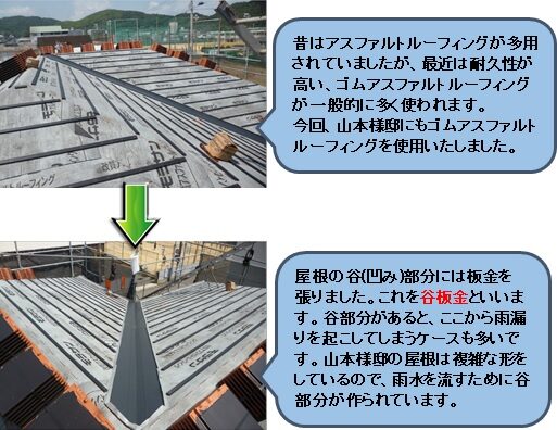 アスファルトルーフィングからゴムアスファルトルーフィングに!耐久性が高まり当分は雨漏りの心配も一切ないでしょう(^^♪