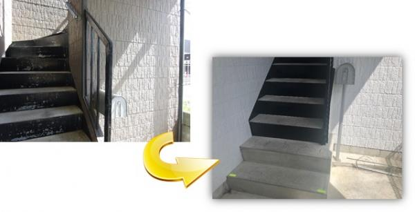 玄関までの階段部分です。色が落ちていたところも隅々まで塗りなおしました♪