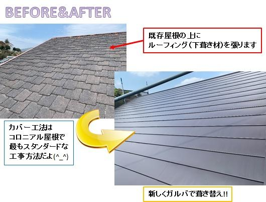 屋根は、既存のコロニアルの上にカバー工法(重ね葺き)で、ガルバに施工させていただきました。