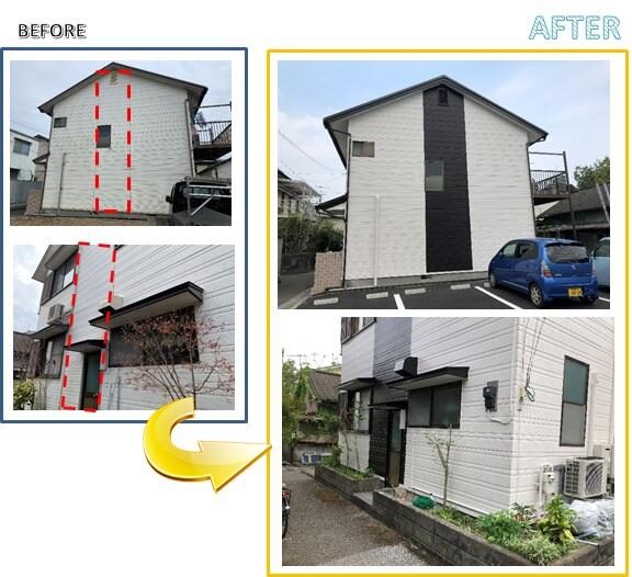 外壁のひび割れはなかったので、一安心。ツートンカラーで、おしゃれになりました(^^)