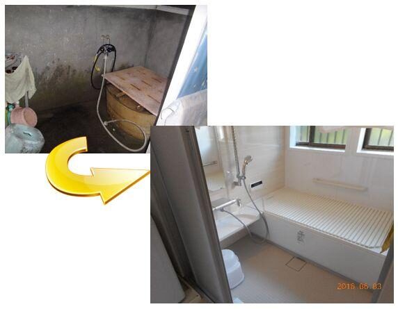 お風呂場のBEFORE&AFTERです!車いす生活になった時のことも考えて、2枚引き戸で間口が広くなるようにしました☆