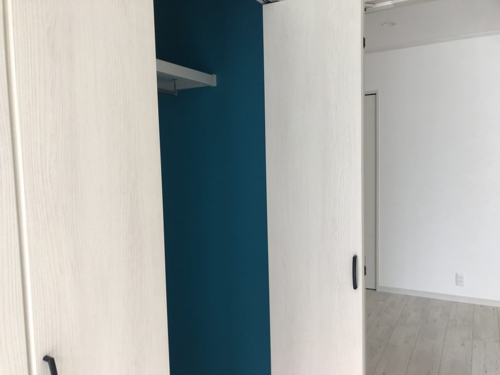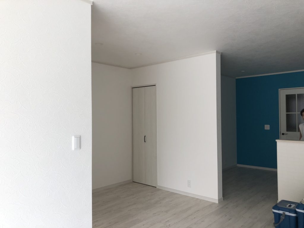 アクセントで使った水色の壁紙が素敵ですね(^▽^)/