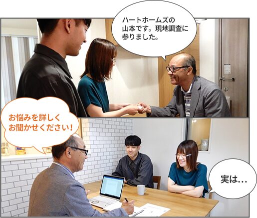 ※ご相談をお聞きして、いきなりお客様のお宅に伺うことはありません。 希望されるお客様には、お伺いするアポイントのお約束をさせていただきます。