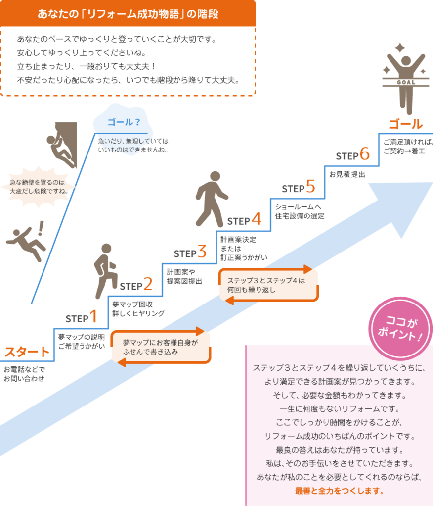 STEP3とSTEP4 を繰り返していくうちに、より満足できるリフォームプランが見つかってきます。