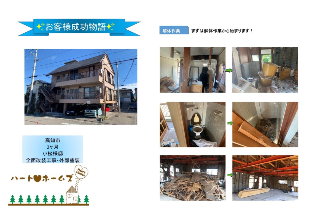 築30年になる家。思い出もあり、信頼できる業者さんにお任せしたいと思いました。そんなときハートホームズさんと出会い、家に対する不満 や、よかった点などを細かくヒヤリングしてもらい、何回もの打合せをしました。最初はどこに頼んだらいいかもわからずどうゆうやり方でどのくらいお金がか かるかもわからず不安でしたが丁寧で細かい説明などをしてもらい、大満足のリフォームができました。